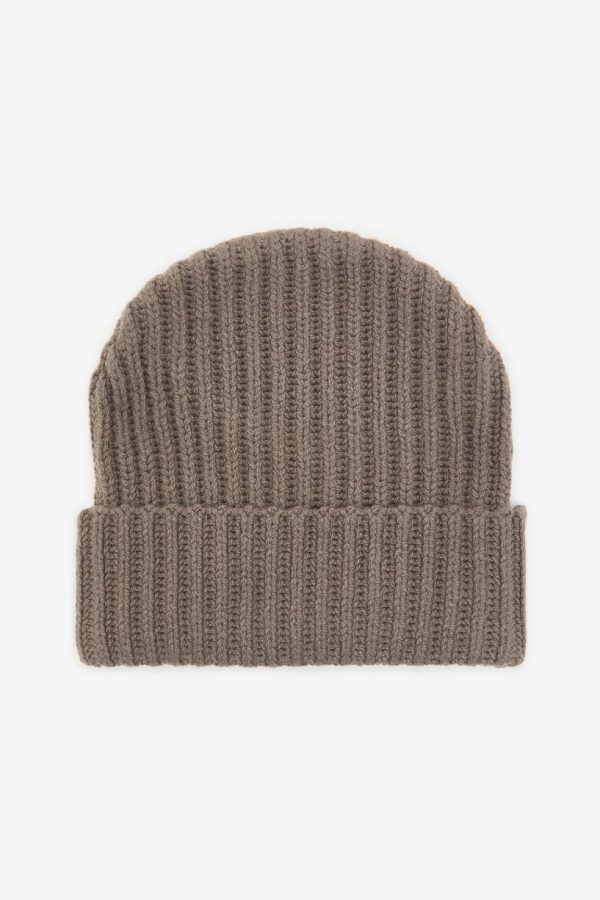 Cap with turned-up edge in full cardigan rib and mixed mohair. Gauge 3.