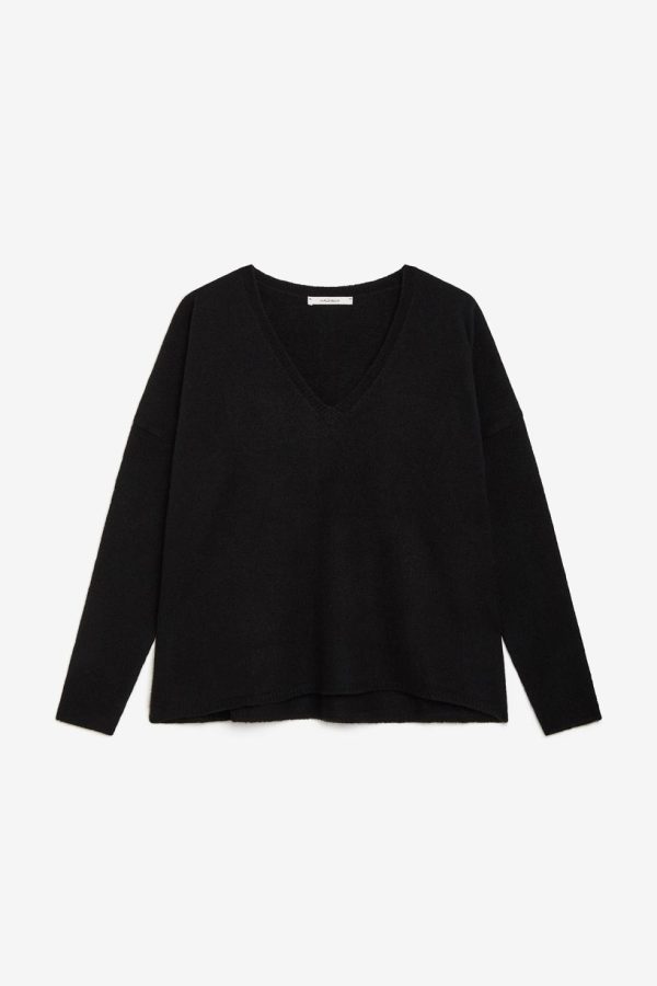 Oversize V-neck sweater, in wool cashmere, with ribbed sleeves. Made in Italy.