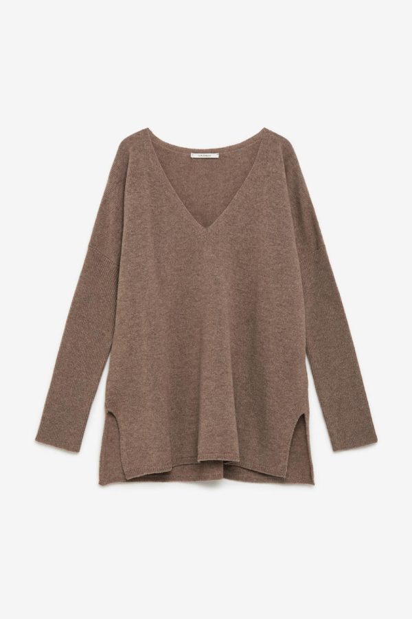 Oversize V-neck sweater, in wool cashmere, with ribbed sleeves. Made in Italy.