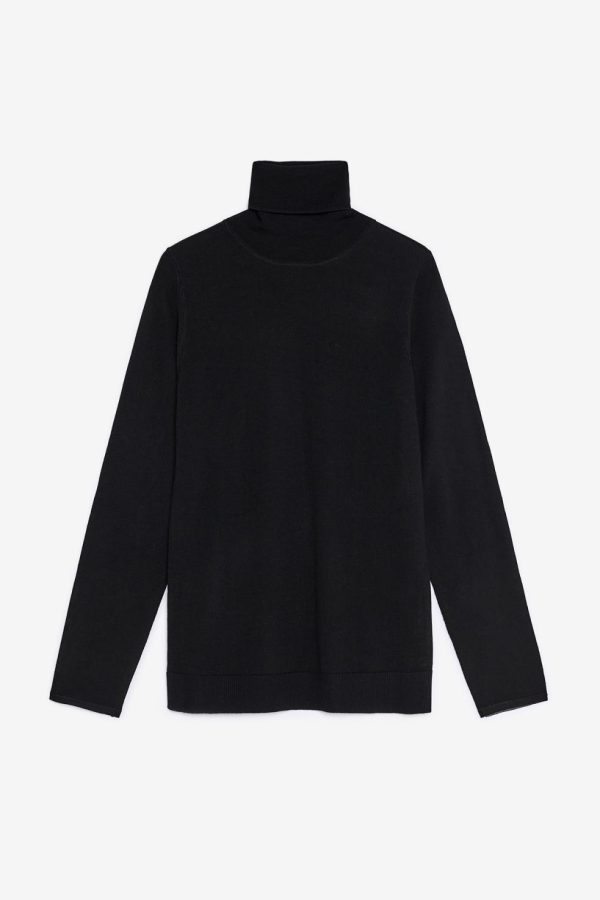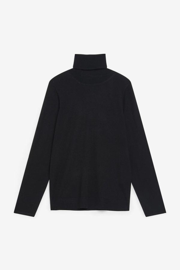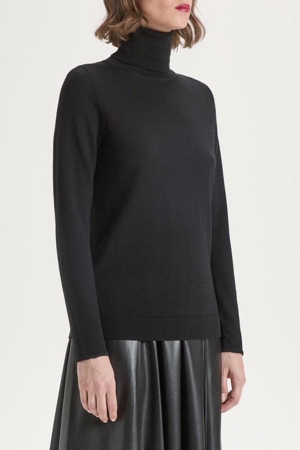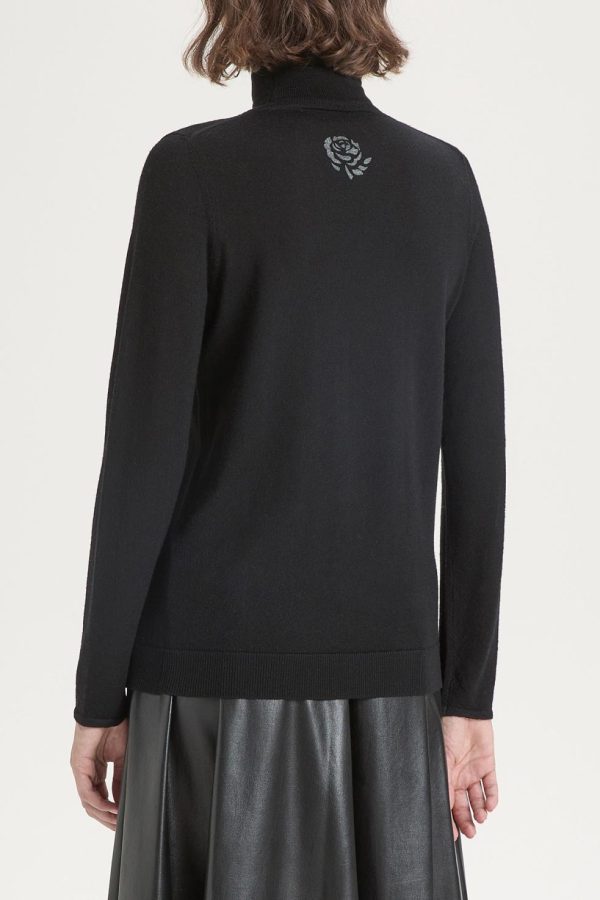 Pure merino wool roll neck, featuring the Maliparmi rose printed on the back.