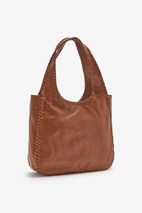 Women Malìparmi Medium Bags | Leather Tressé Large Shoulder Bag Camel
