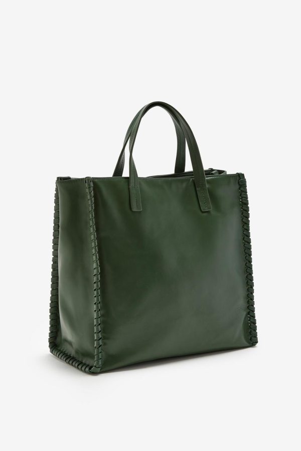 Women Malìparmi Shopping Bag | Leather Tressé Shopping Bag Fern Green
