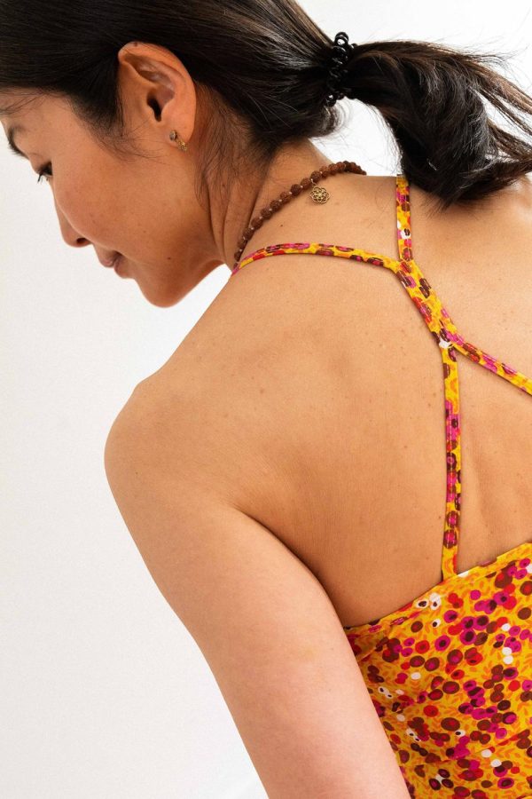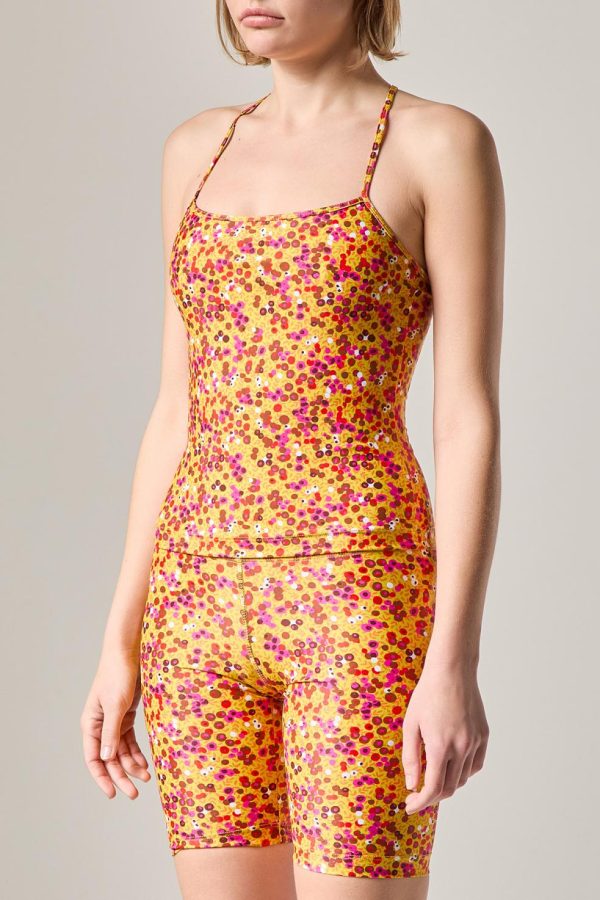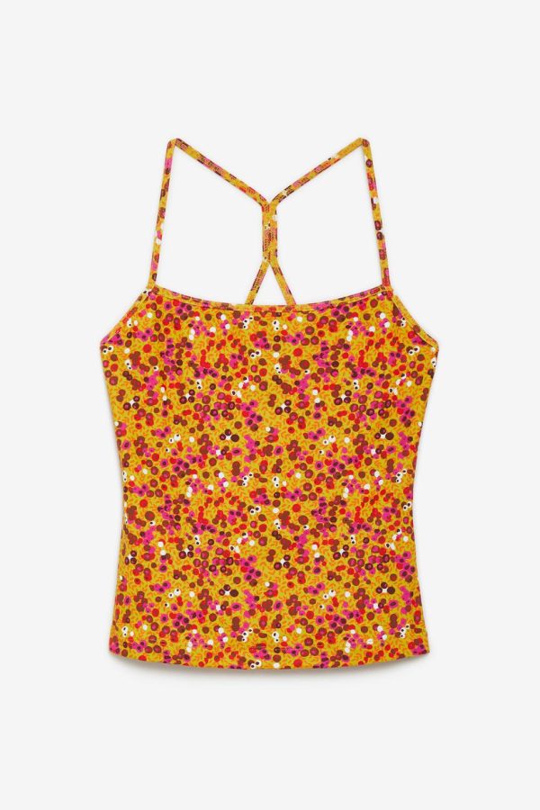 Technical jersey top with fine straps crossing at the back. Its high-quality fabric makes this top ideal for sports, providing breathability and comfort, but can also be worn in everyday outfits for a touch of colour and casual style.