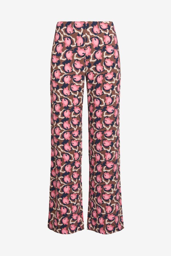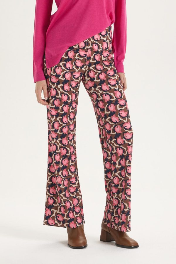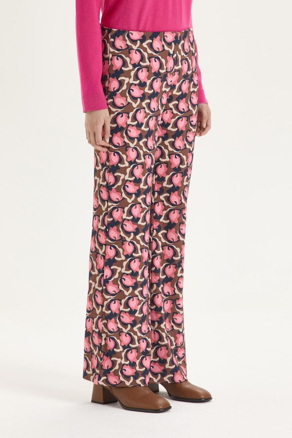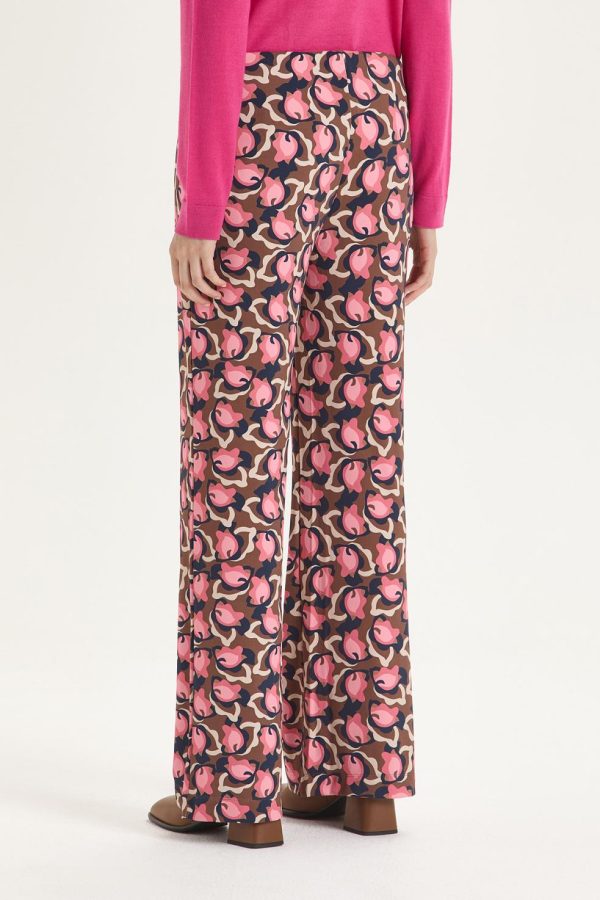 Stretchy printed viscose interlock straight trousers with elasticated waist.