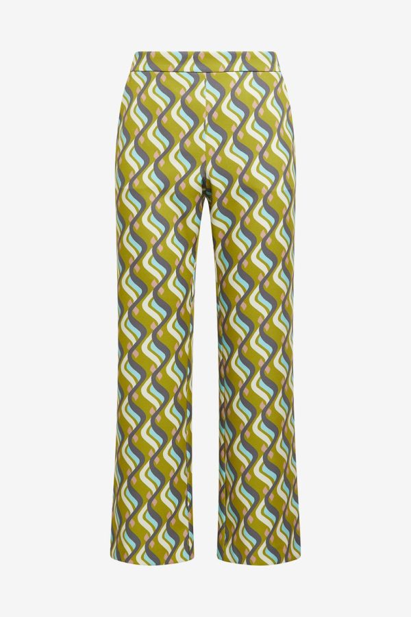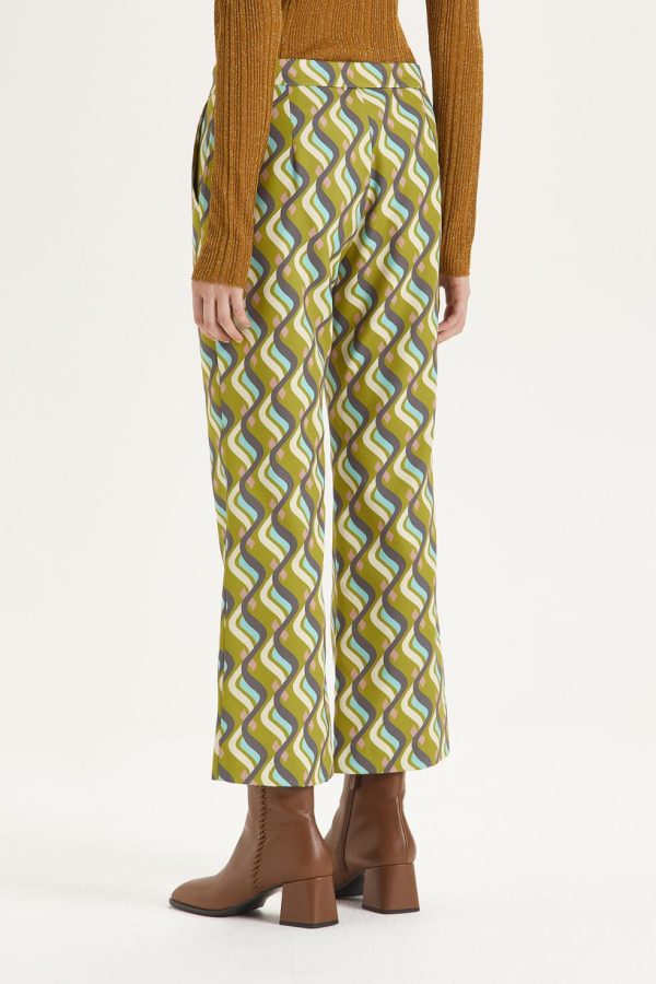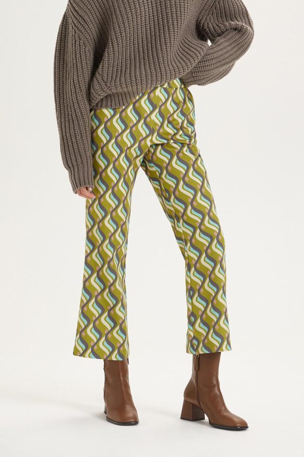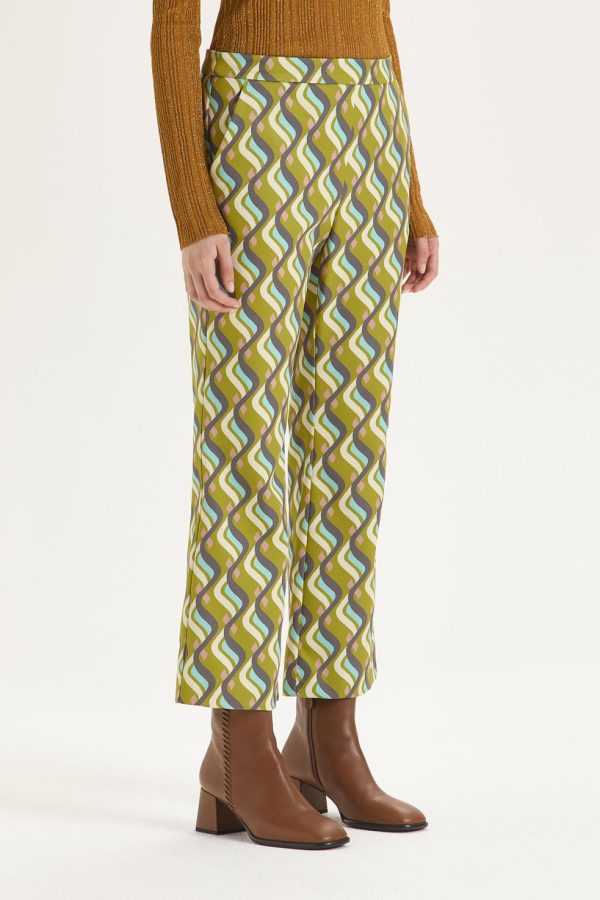 Flared trousers in stretchy, printed technical cady, side zip and slant pocket.