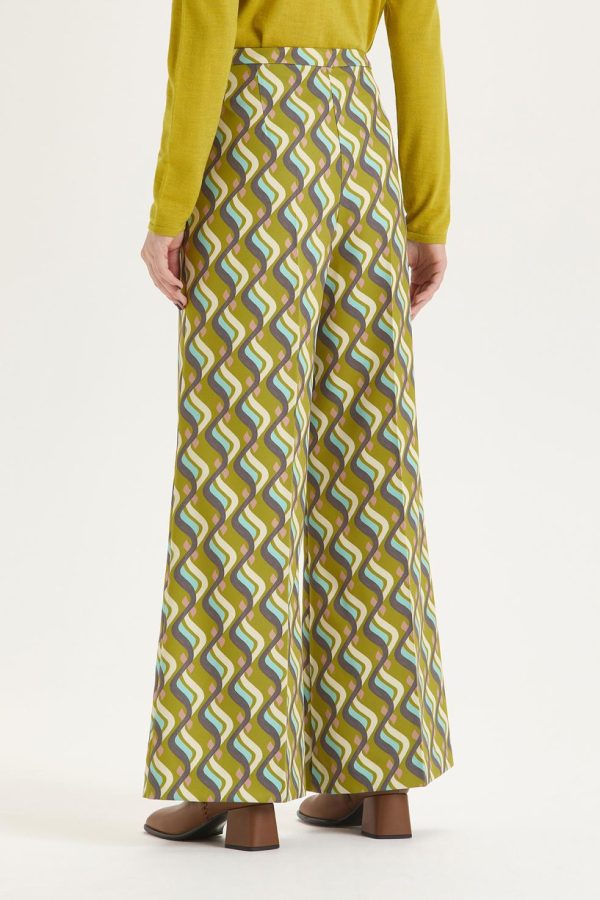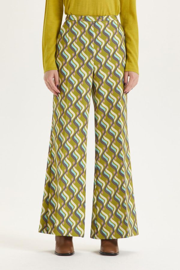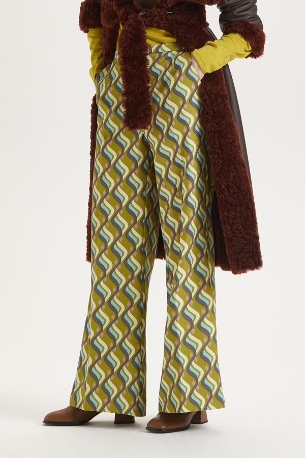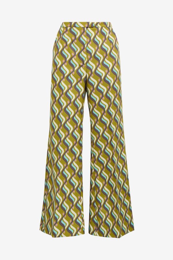 Straight-leg trousers in printed stretchy technical cady with front zip and slant pocket on the side.