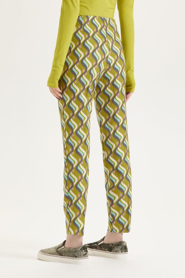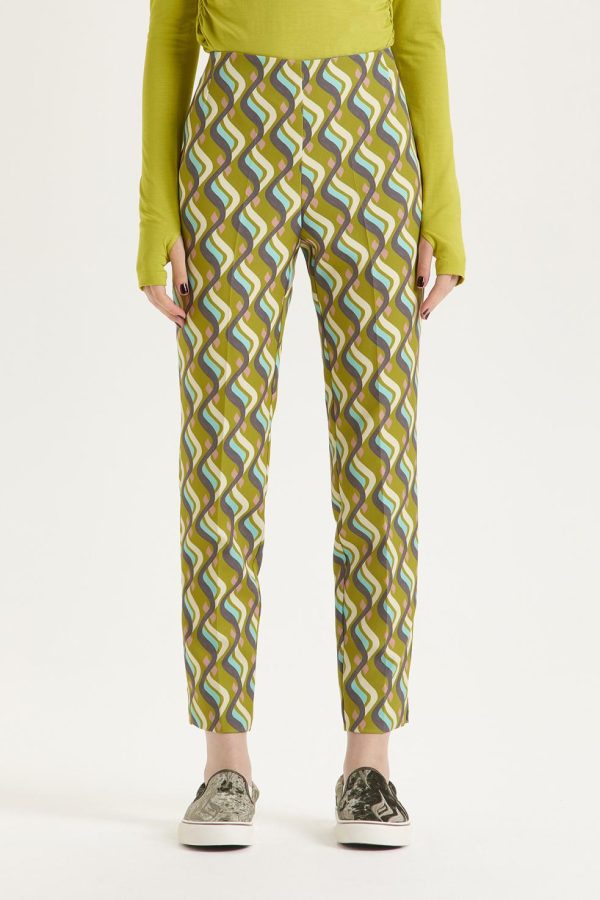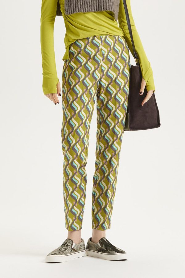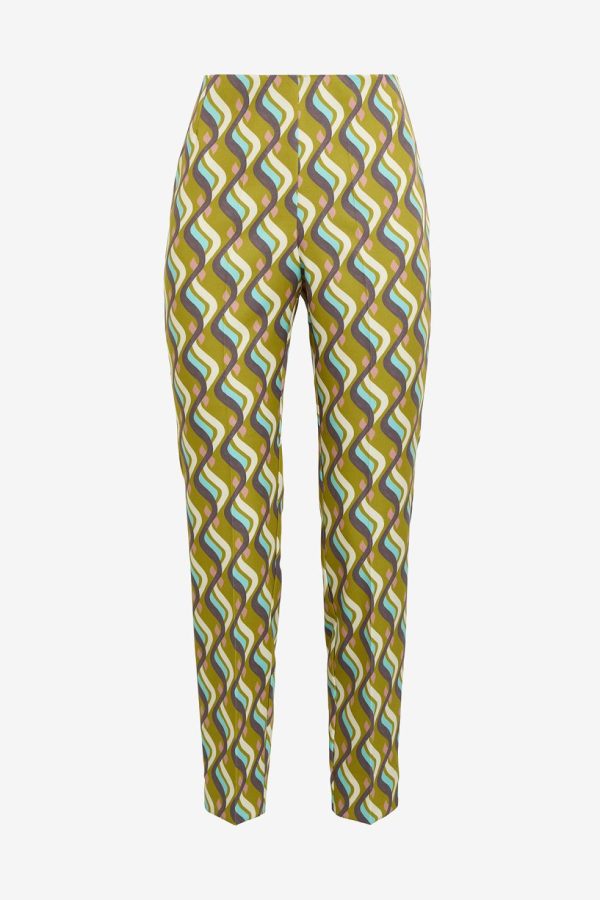 Straight-leg trousers in printed stretchy technical cady with side zip and pressed pleat.