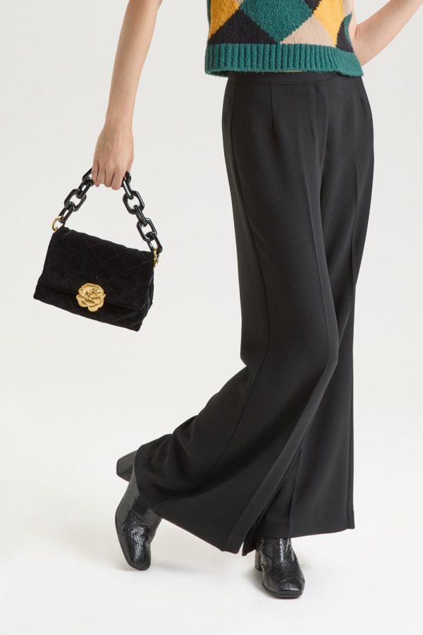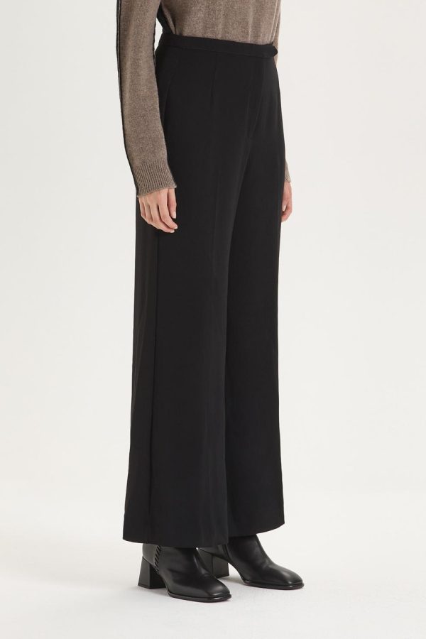 Straight leg, sable crepe trousers, with front zip and side pocket.