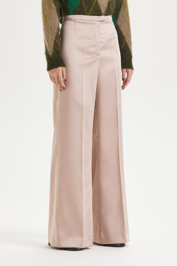 Stretchy duchesse straight-leg trousers with front zip.
